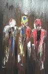2011Vriendinnen op stap. Met paletmes geschilderd klein doek