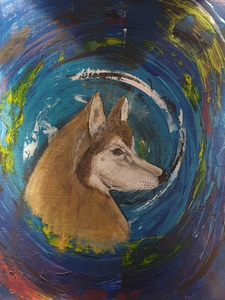 2015Acrylschilderij van een vogeltje op een wilgentak